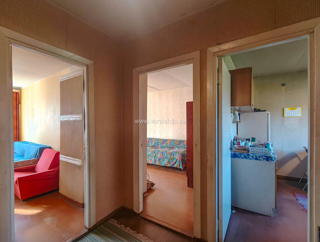 Korteris on suur esik, paremat kätt jääb tualett, vannituba ja köök, otse minna on elutuba ja vasakut kätt jääb magamistuba.