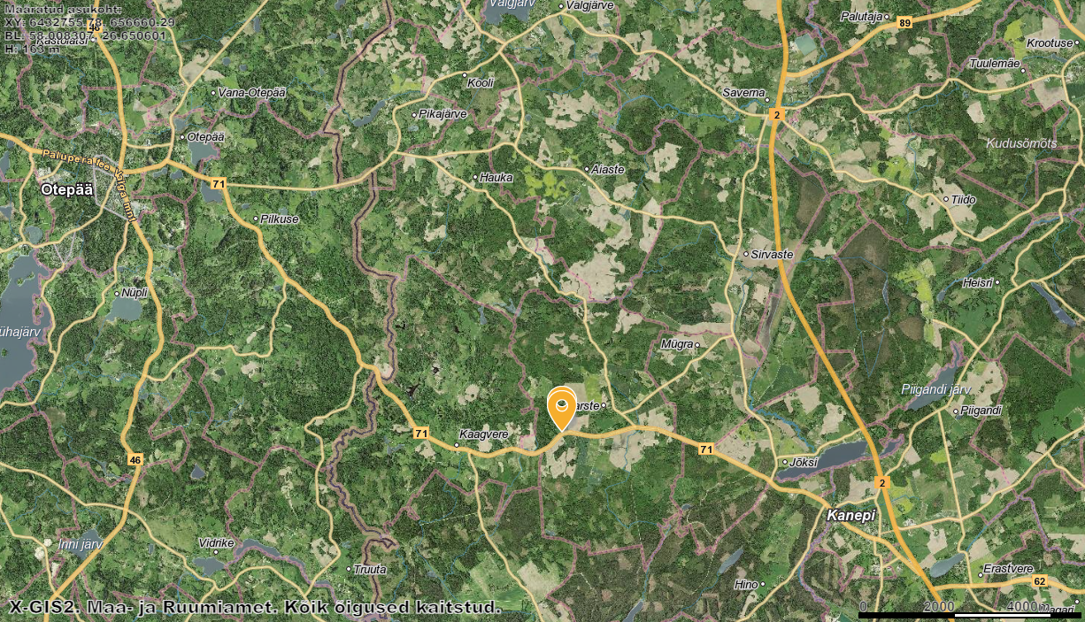 Kaugus Tartust 47 km, Põlvast 29 km, Võrust 29 km, Valgast 56 km, Tallinnast 227 km.