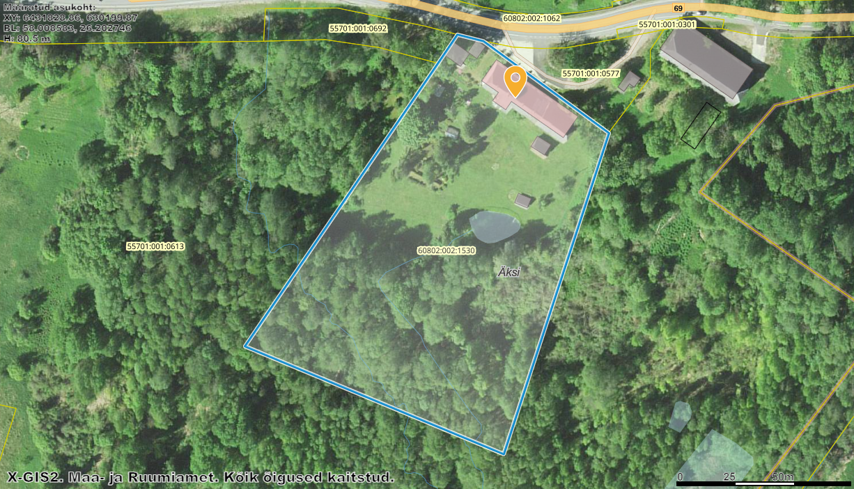 Maatükk piirneb asfalteeritud avaliku teega.