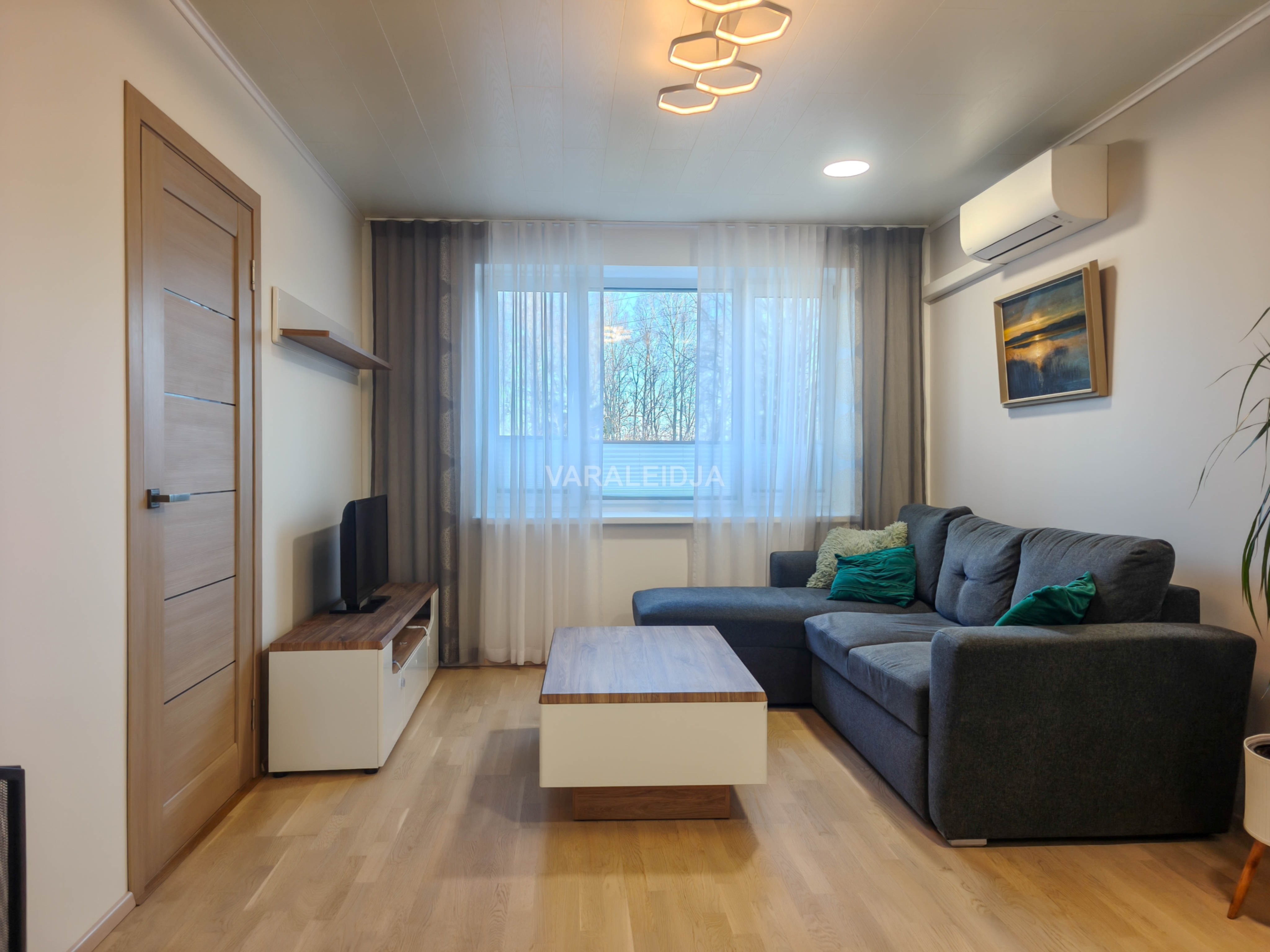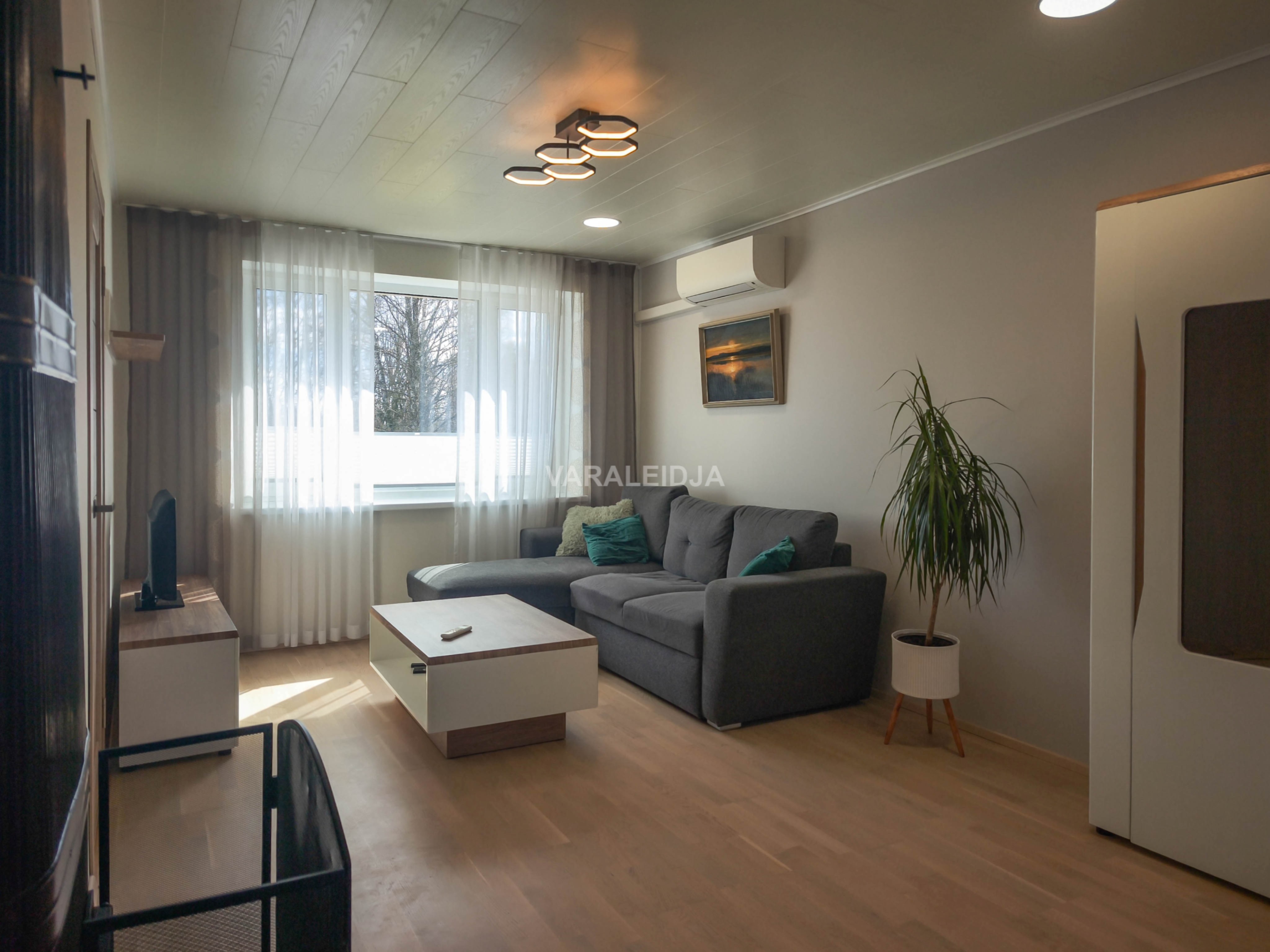 Elutoas on olemas nii diivan, diivanilaud, vitriinkapp, telerialus koos teleriga.