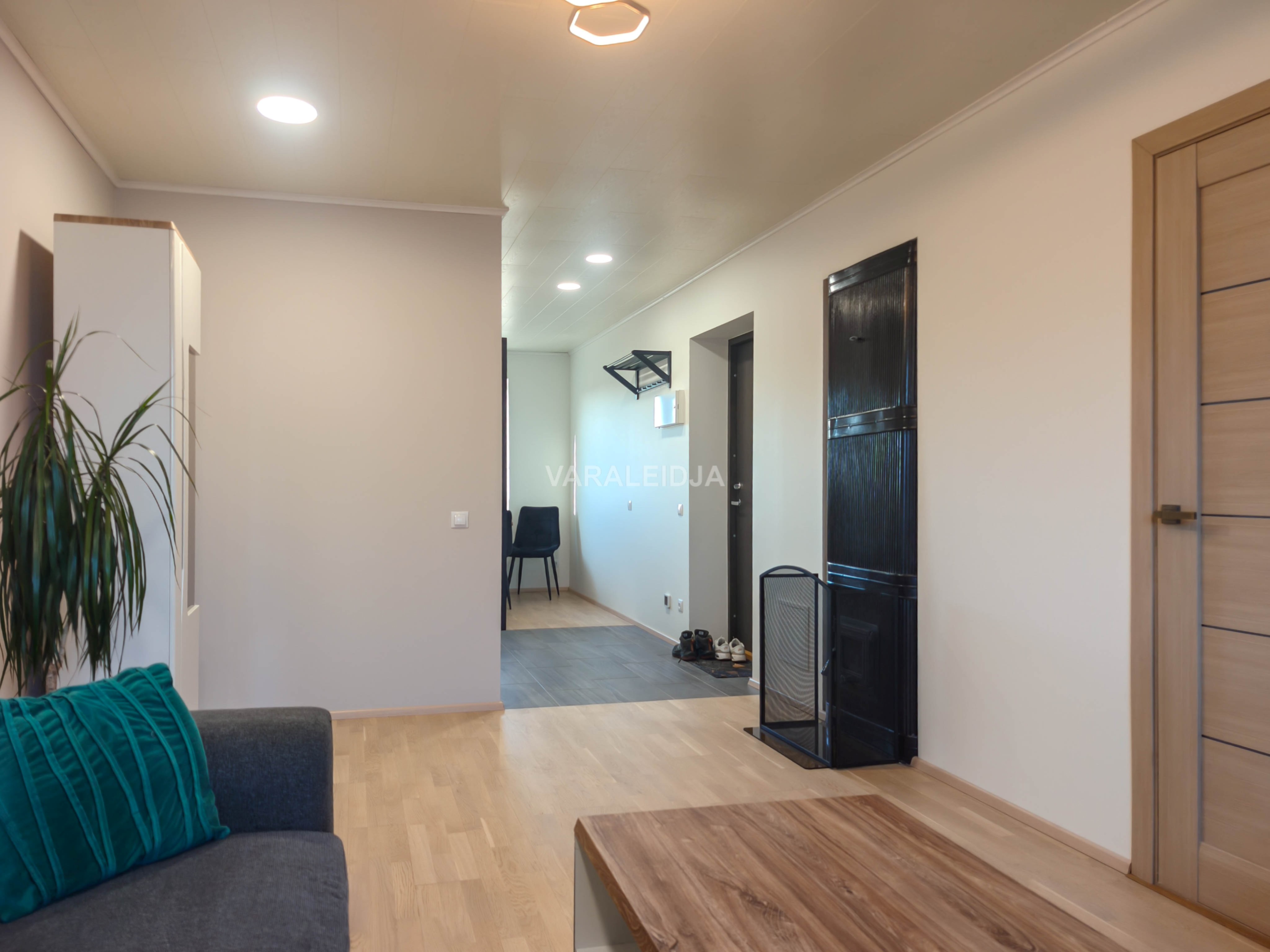 Korterit köetakse ahjuga ja vajadusel ka õhksoojuspumbaga. Samuti on esiku ja duširuumi põranda alla paigaldatud elektripõrandaküte. Sooja vee saab 80 L boilerist.