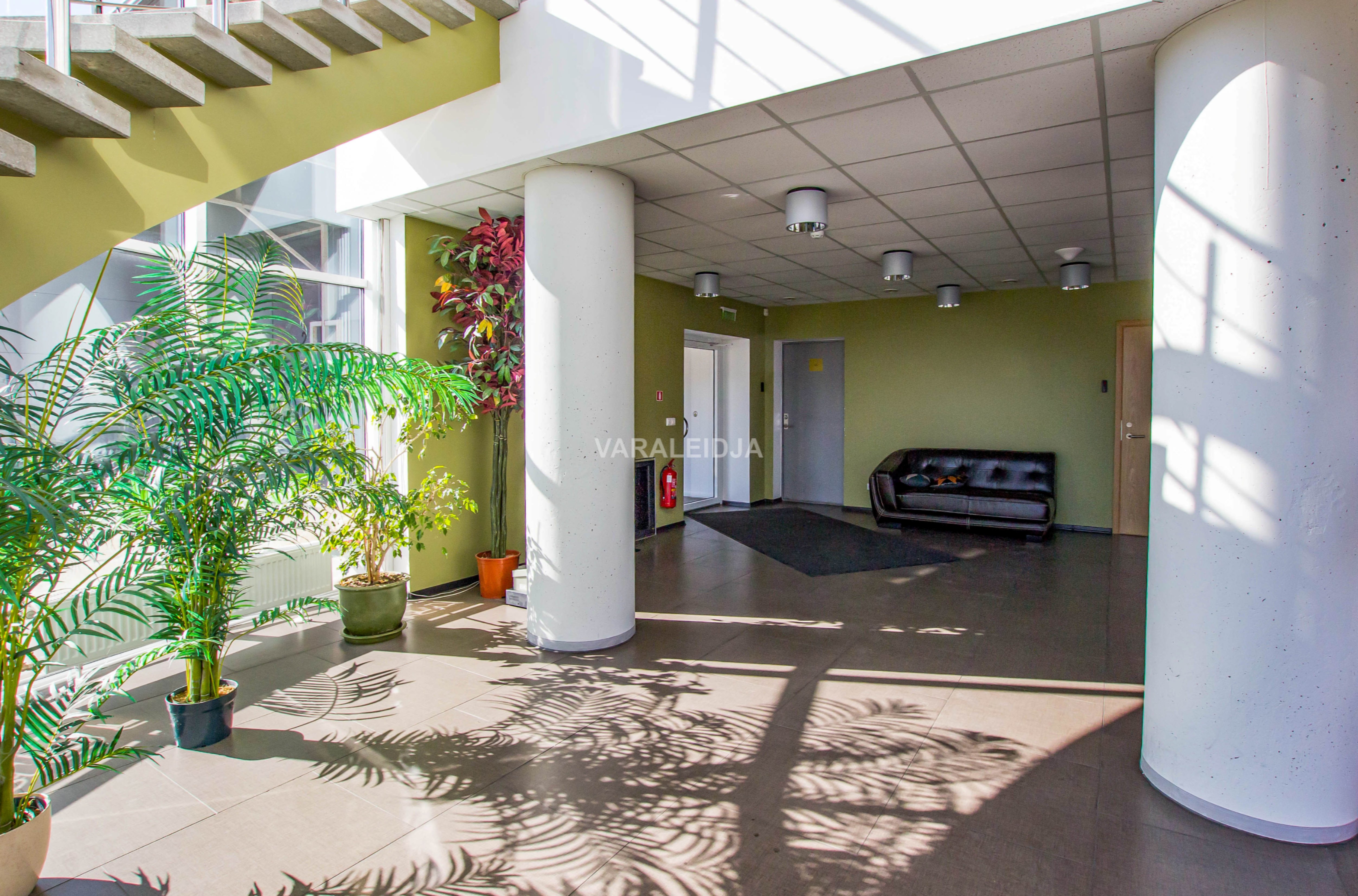 Kontori poolel on vahelaed r/b õõnespaneelist, seinad fibost, mis on mõlemalt poolt krohvitud. Esinduslik sissepääs, laopinnast eraldi. Kontori osa läbi kahe korruse.